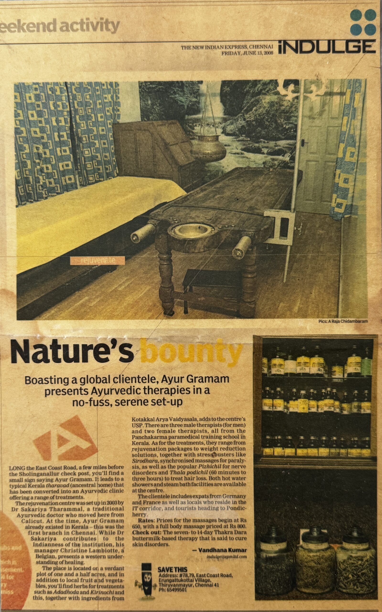 AYUR GRAMAM was founded in 2000 by Mr. Sakariya Tharammel, a renowned expert with extensive knowledge in Ayurvedic practices. His vast experience and dedication to showcasing the benefits of Ayurveda globally have earned him the trust and respect of patients worldwide. Mr. Sakariya’s passion for Ayurveda extends to training others, reflecting his deep belief in the transformative power of this ancient science.