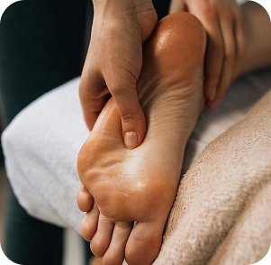 Reflexology involves the application of gentle pressure to specific points located on the feet. These points related to the internal organs, glands and structures of the body. The mild pressure on various parts of the feet can effect and help normalize body function.